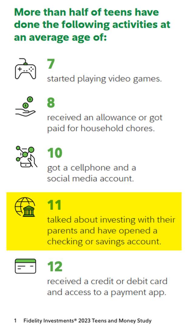 A new study from Fidelity Investments, titled "2023 Teens and Money Study," reveals more than half of the respondents (ages 13 to 17) received a smartphone around the age of 10. By eleven, they spoke with their parents about opening a brokerage or checking account.