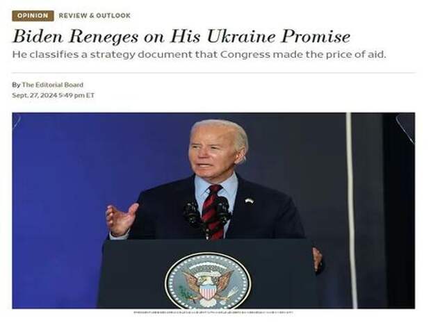 The Wall Street Journal (WSJ) published a very critical editorial on Friday about how “Biden Reneges on His Ukraine Promise: He classifies a strategy document that Congress made the price of aid.