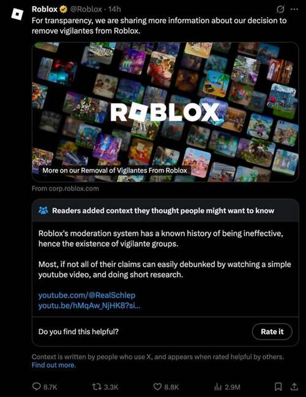 But the backlash has been fierce, with Roblox even receiving a community note on their X post stating they have a “known history of being ineffective” at keeping their game safe from child predators.