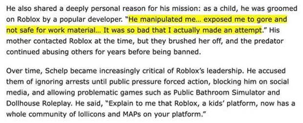 IndiaTimes also reported that, when Schlep was younger, he was groomed by a Roblox developer—hence why he is so determined to expose child predators.