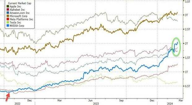 NVDA officially closed above $2TN market cap today. For context, in Oct 2022, the company was worth $280BN...