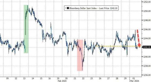 ISM Manufacturing was a shitshow (in contraction for 15 straight months), Construction spending unexpectedly declined (first MoM drop since Dec 2022), UMich confidence declined (and inflation exp ticked higher) - all of which dragged US Macro surprise index back near neutral.