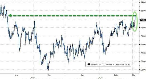 Oil prices also spiked today, breaking out to their highest close since Nov 6th...