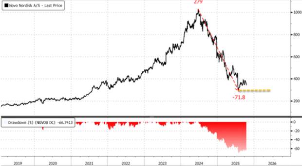 " Bad news for Goldman analysts, who have been Novo's 'super bulls' - but for those trying to catch a bottom in the stock, there may still be more downside ahead.Trump told reporters the cost of Ozempic will soon be "much lower," adding, "Those are going to be $150 out of pocket." The comments were made at a press conference in the Oval Office, during an event centered around a deal Trump folks made with Germany's Merck KGaA to reduce fertility treatments in exchange for a reprieve on looming pharmaceutical tariffs.