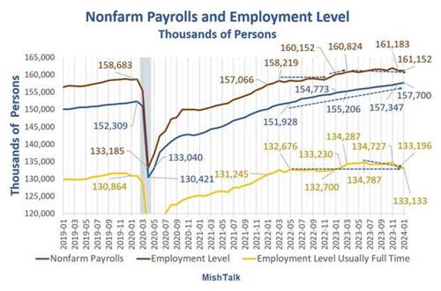 February 2, 2024: Jobs Soar but Full Time Employment Is Barely Changed Since May 2022