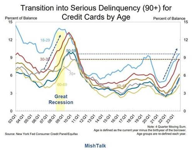 For nearly all age groups, serious delinquencies are the highest since 2011 at best.