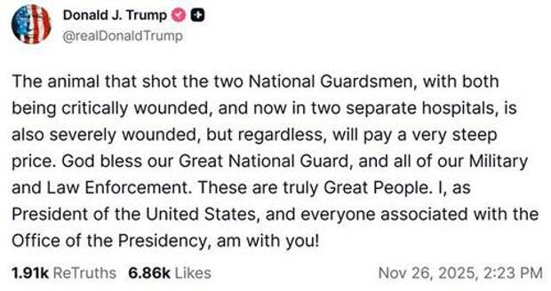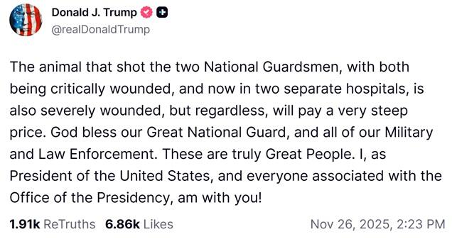 Expect a Truth Social post shortly.Photo of civilian and possible suspect in Farrragut West shooting. Looks like an Arab Muslim. He is handcuffed and stripped. Two national guard shot. pic.twitter.com/QRVeuTsu6F