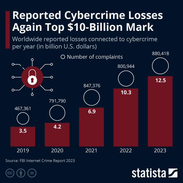 As Statista's Florian Zandt shows in the chart below, based on data provided in the report shows, reported cybercrime losses increased significantly from 2021 onwards.
