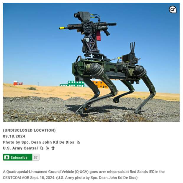 Beyond Red Sands, the US Army has been trialing armed robo dogs elsewhere.