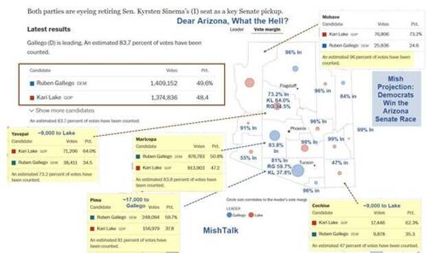 But from where I sit, it looks like Kari Lake loses by about 1.0 to 1.6 percent.