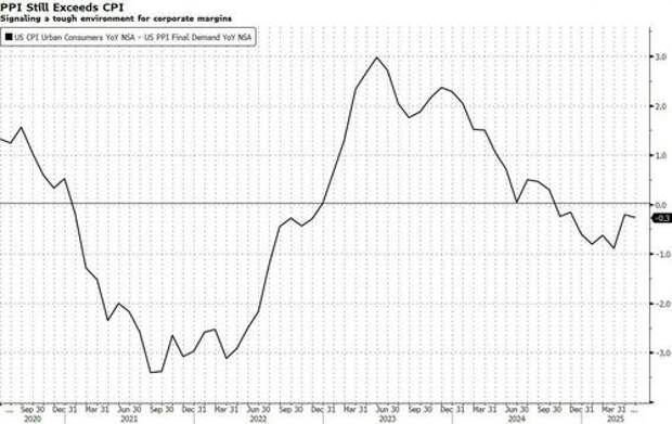 Earlier today, when analyzing the latest PPI data, we concluded that - at least so far - it is companies that are eating tariffs costs, not passing them on to consumers. In a subsequent report, Bloomberg agrees.