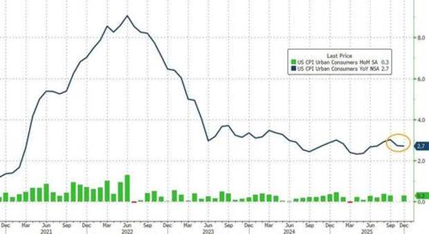 On the heels of 'solid' labor market data from BLS (lower unemployment), ADP (weekly employment change remaining positive), and a rebound in Small Business Optimism; this morning we get a glimpse of the other side of The Fed's mandate as the last CPI print for 2025 prints.