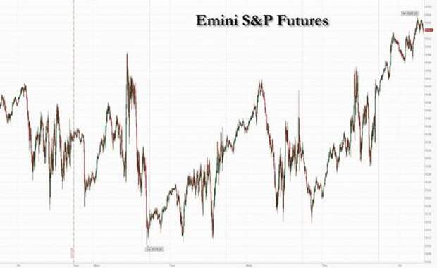 As of 7:45am ET, S&P and Nasdaq 100 futures rose 0.4%, suggesting this week’s rally on Wall Street is set to continue, with both indexes on course for a third quarter of gains amid expectations that signs of more bad economic growth will give the Fed more room to ease policy this year. That said, not even a looming core PCE which will likely show continued easing in prices (May PCE est 0.0% MoM, down from 0.3%, 2.6% YoY, down from 2.7%) is having an impact on bond yields which are notably higher this morning as is the USD as markets take a long, hard look at what inflation will look like under Trump's tariff-ridden regime (spoiler alert: higher). Commodities are mixed: oil and precious metals are higher; base metals are lower. Today's macro focus will be the May PCE release to access the Goldilocks narrative. Survey expects a 0.1% MoM print vs. 0.2% prior; on YoY basis, survey sees the number dropping to 2.6% survey vs. 2.8% prior).In premarket trading, Nike shares tumbled 15% after the sneaker maker’s Q1 sales outlook missed Wall Street expectations. Following the print, UBS downgraded its recommendation on the stock to neutral, saying the fundamental trends were much worse than analysts had realized. Morgan Stanley also moved to the sidelines, seeing the catalyst for their prior overweight thesis on the stock as “out of view." Megacap tech are mostly outperforming: NVDA +65bp, AMZN +40bp, AAPL +54bp, GOOG/L +48bp. Here are some other notable premarket movers: