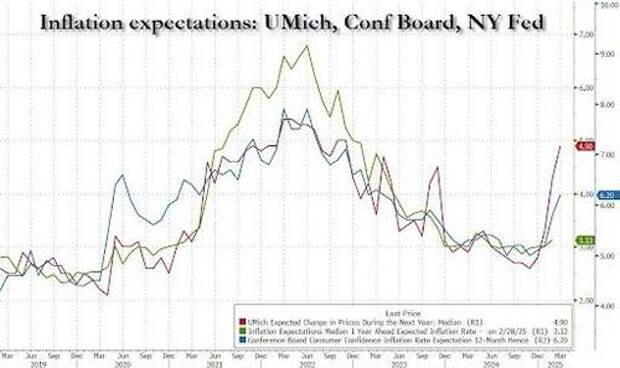 .. still jumping less than the chaos monkeys at UMich...Finally, we noted that March’s fall in confidence was driven by consumers over 55 years old and, to a lesser extent, those between 35 and 55 years old. By contrast, confidence rose slightly among consumers under 35, as an uptick in their assessments of the present situation more than offset gloomier expectations. The decline was also broad-based across income groups, with the only exception being households earning more than $125,000 a year.