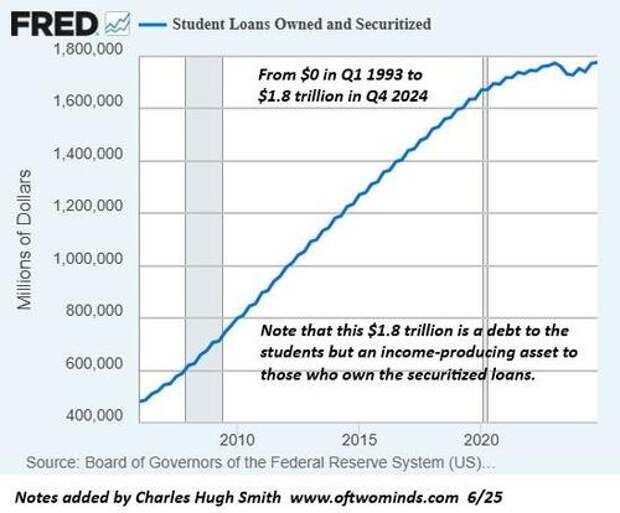 As an example of all these Ratchet Effect dynamics, let's look at student loans. Prior to the start of the student loan machinery in 1993, the U.S. had a mysterious ability to educate millions of university students without burdening the students with trillions of dollars of student loan debt.