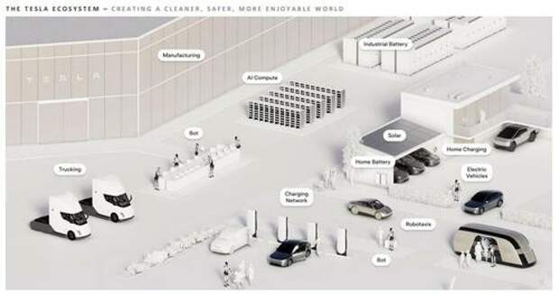Page 12 of the shareholder deck shows the “Tesla Ecosystem,” which includes Optimus, pushing a baby stroller.