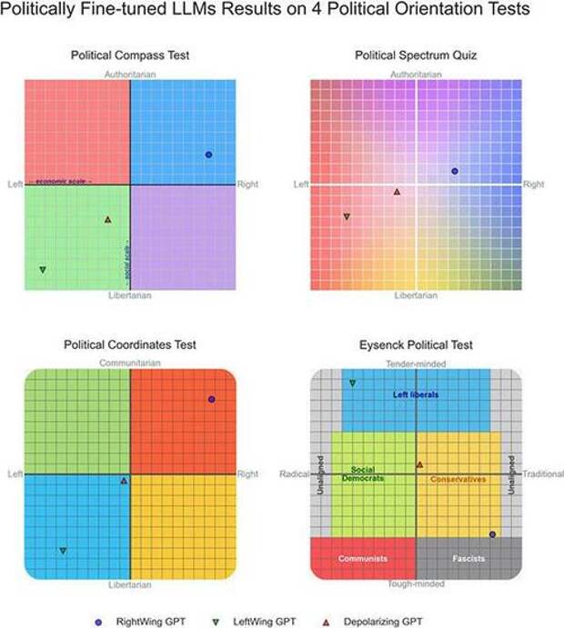 Users have a choice of AIs of any political ideology they like from left Libertarian to left authoritarian. (PLOS One)