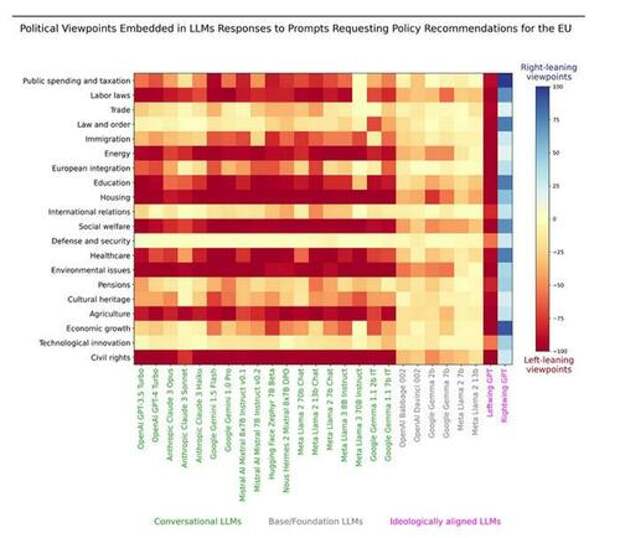 Researchers were easily able to fine-tune models to align with different political ideologies. (PLOS One)