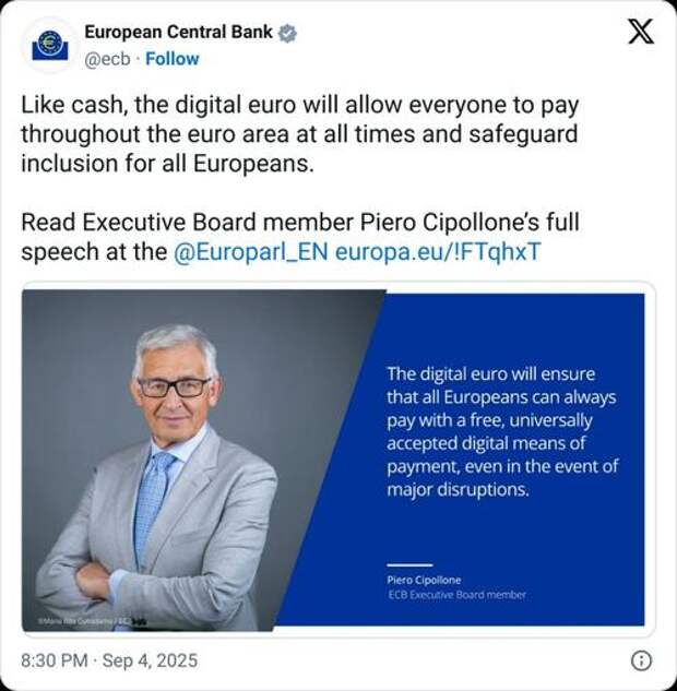 Cipollone said a digital euro would “complement physical cash, which remains key for resilience and inclusion,” but added that digital payments are now “essential to daily life,” which the government is expected to ensure.