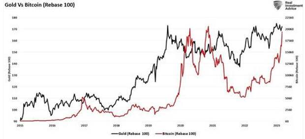 In other words, the stock market frenzy to “buy anything that is going up” has spread from just a handful of stocks related to artificial intelligence to gold and digital currencies.