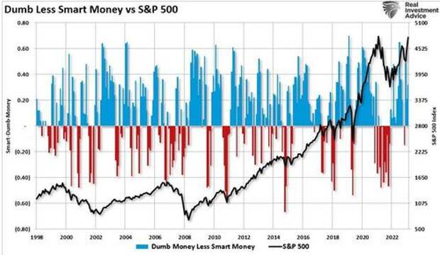 “The difference between “smart” and “dumb money” investors shows that, more often than not, the “dumb money” invests near market tops and sells near market bottoms.”