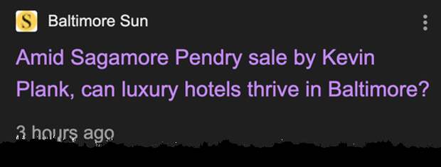 A major problem for the luxury hotel, as The Sun asks: Amid Sagamore Pendry sale by Kevin Plank, can luxury hotels thrive in Baltimore?