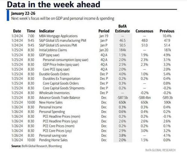 Finally, looking at just the US, Goldman writes that the key economic data releases this week are the Q4 GDP advance release and durable goods report on Thursday, and the core PCE inflation report on Friday. Fed officials are not expected to comment on monetary policy this week, reflecting the blackout period in advance of the FOMC meeting January 30-31.