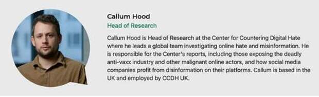 Further, neither Imran Ahmed nor anyone I can find associated with CCDH has an academic or research background. Most CCDH employees are either political operatives who worked for the British Labour Party or they’re people with backgrounds doing advocacy work in nonprofits. CCDH’s “head of research” is a guy named Callum Hood. You can’t find a job history for Hood anywhere, and CCDH lists no employment Hood has ever had except working at CCDH.