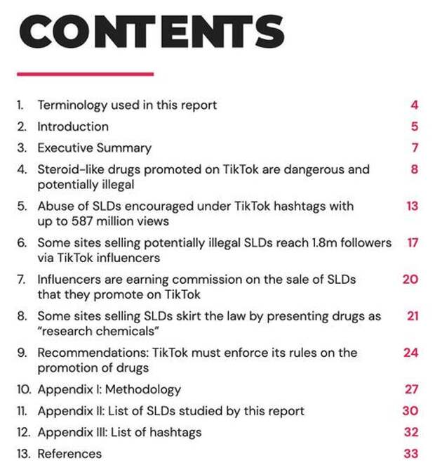 CCDH’s latest report, like all of them, is heavy on graphics to provide a visual effect that you are reading a credible pieces of research that a government agency might publish. Here’s one of the first pages you encounter: a list of contents that tries to bedazzle you with an appendix that points to a “methodology” as well as a list of references to make it appear you’re getting a real piece of scientific scholarship.