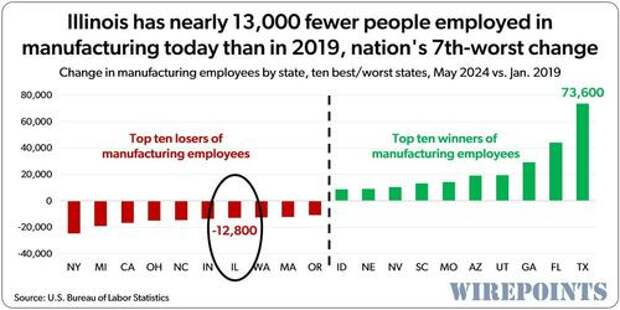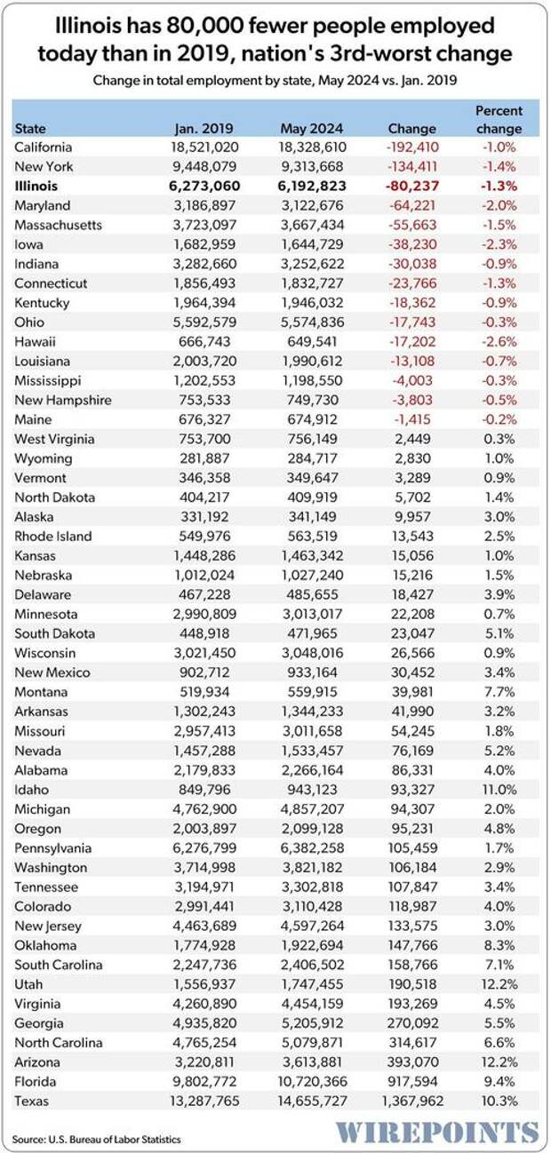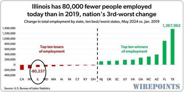 It’s also the nation’s 3rd-worst performance over that 5-year span. Only California and New York suffered bigger losses in employment than Illinois did.