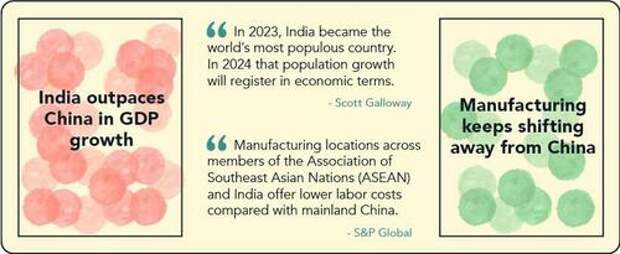 “The transition is two-sided: India is investing in infrastructure and courting foreign investment, while China is investing in aircraft carriers and turning its gaze inward to deal with youth unemployment and sectors crashing.”