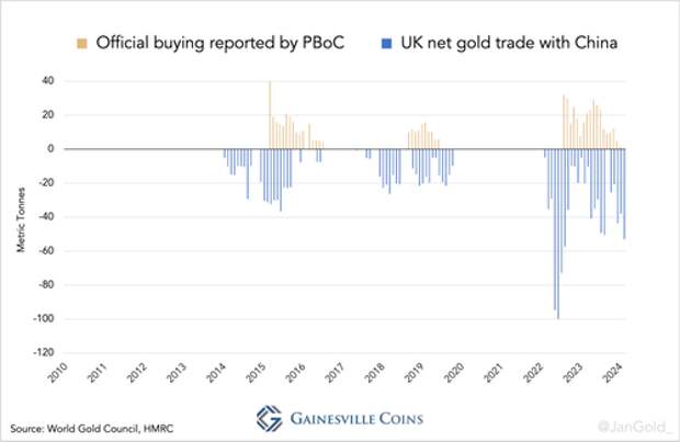 It all points towards UK gold exports to China are destined for the PBoC—although probably not every ounce of these flows is for the Chinese central bank. Clearly, the PBoC is accumulating more gold than it wants to disclose.