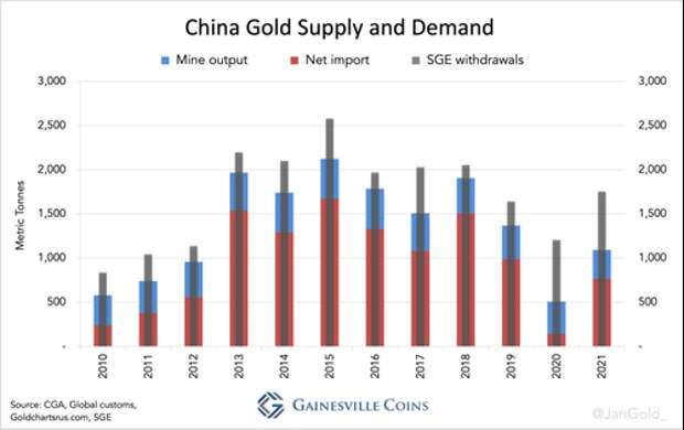 SGE withdrawals = net import + domestic mine output + recycled metal