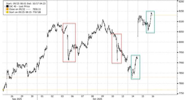 France's CAC 40 stock market index rose after Lecornu survived the two no-confidence votes, suggesting potential political stability ahead.