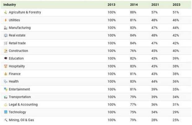 Note: Only select years shown and industry labels lightly modified, both for readability.