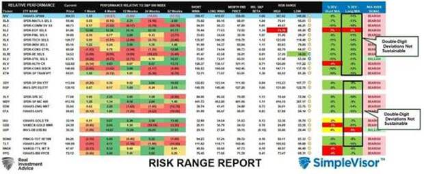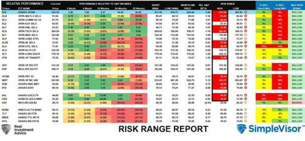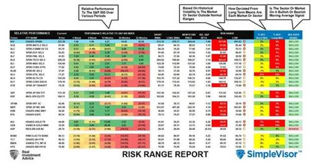 We have produced a weekly”“risk range repor”” in the Bull Bear Report for several years. That report contains several measures of analysis, as shown below.