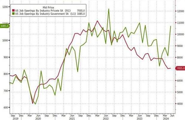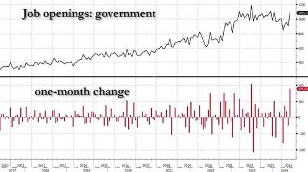 And at a time when it is critical for Biden to still maintain the illusion that at least the labor market remains strong when everything else in Biden's economy is crashing and burning, we'll let readers decide if the near record number of government job openings is an accurate reflection of a strong labor market, or is merely a reflection of a debt-funded deep state gone full tilt.