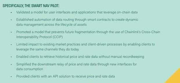 The Smart NAV Pilot program was conducted to standardize a method of providing net asset value (NAV) data of funds across blockchains using Chainlink’s Cross-Chain Interoperability Protocol (CCIP), according to a May 16 DTCC report.