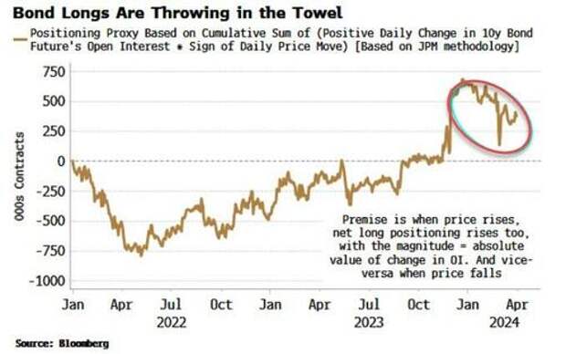 (This proxy, whose methodology is explained in the chart, circumvents the distortion to Commitment of Traders data from the basis trade, i.e. trading the cash bond versus the future.)
