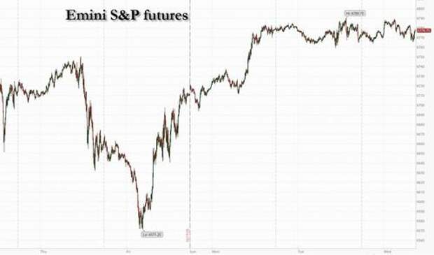 US equity futures are flat again, with tech and small caps lagging as traders parsed the latest earnings reports and corporate news amid worries over trade, the US government shutdown and geopolitical risks. Gold and silver extended declines after Tuesday’s slump.