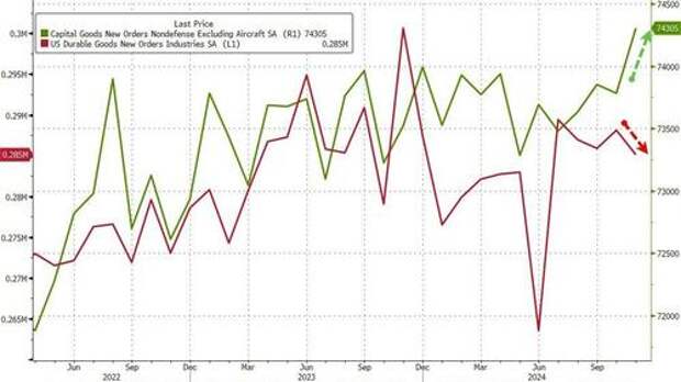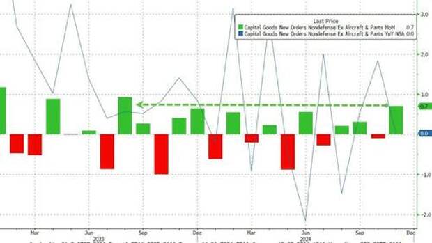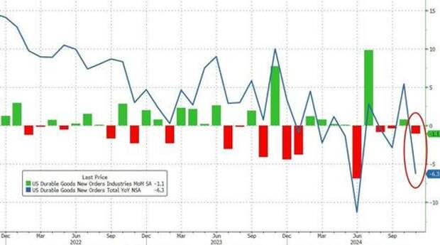 The preliminary headline US durable goods order data for November shows a much worse than expected 1.1% MoM decline (-0.3% exp) which dragged orders down 6.3% YoY on fewer orders for commercial aircraft.