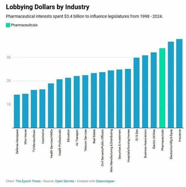 The pharmaceutical lobby spent more money over the past quarter century than did electric utilities, oil and gas companies, hospitals and nursing homes—more than the automotive and defense aerospace industries combined.