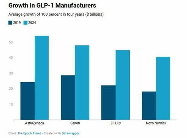 Currently, the GLP-1 market is dominated by Novo Nordisk, Eli Lilly, AstraZeneca, and Sanofi, though others are working to develop similar medications.