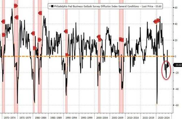 Manufacturing activity in the Philadelphia region continued to decline in January (for the 18th month of the last 20). The headline Philly Fed survey printed -10.6 (worse than the -6.5 expected) and apart from the insane outlier spike in August, this indicator screams recession...