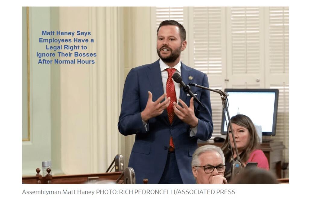The Assembly bill would grant employees a legal right to ignore an employer’s communications during “nonworking hours” except for emergencies or work scheduling.