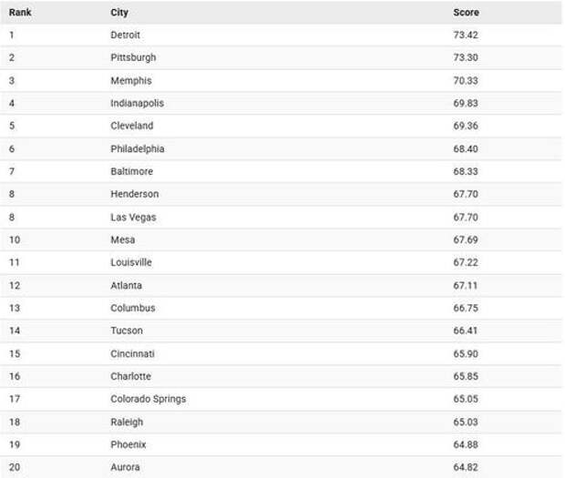 Like Detroit, Memphis, TN—ranked third—has also been highlighted as one of the most affordable large cities in the country for working families.