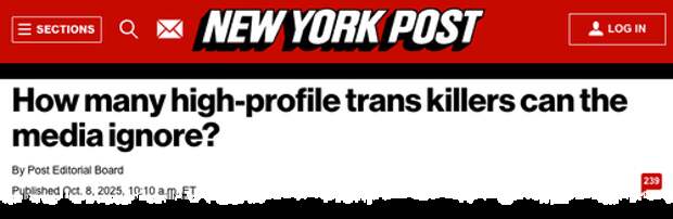 ), they're still fixated on "misinformation" and "disinformation" campaigns in their effort to bring down President Trump and crush the MAGA movement for their globalist friends. But the American people no longer believe their nonsense and have rejected the globalists.On Wednesday, the New York Post Editorial Board penned in a title: "How many high-profile trans killers can the media ignore?"