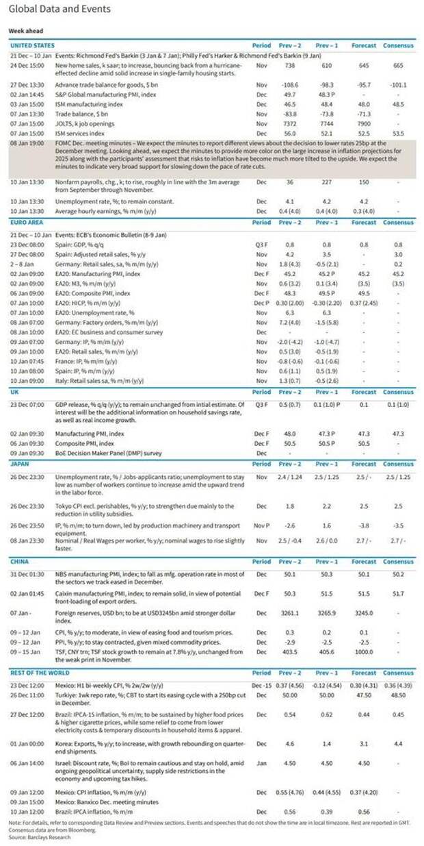This week's holiday-shortened economic calendar is extremely light as 2024 comes to a close.