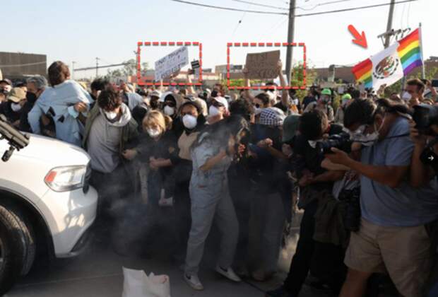 Protesters, some possibly skipping work and others suspected of being professional agitators funded by shadowy NGOs, carried the usual signs - "Fascists," "Resist Trump" - and waved a LGBTQ Mexican flag.