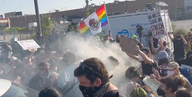 Less than two hours into the protest, agents deployed pepper balls into the crowd, causing demonstrators to scatter.